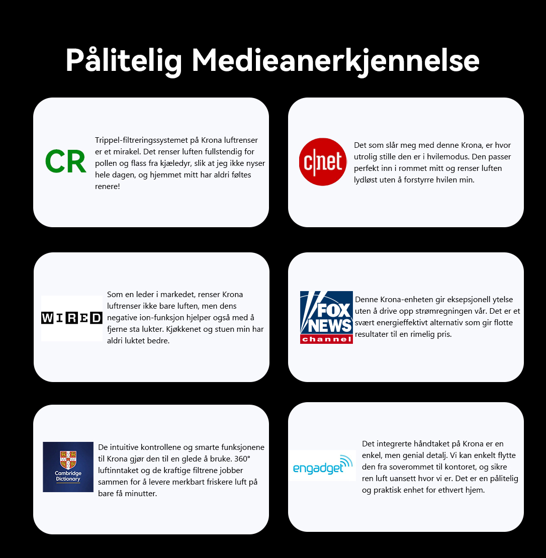 Krona Luftrensere: Kraftfulle, Smarte og Elegante. Opplev enestående renhet og komfort i hvert pust!